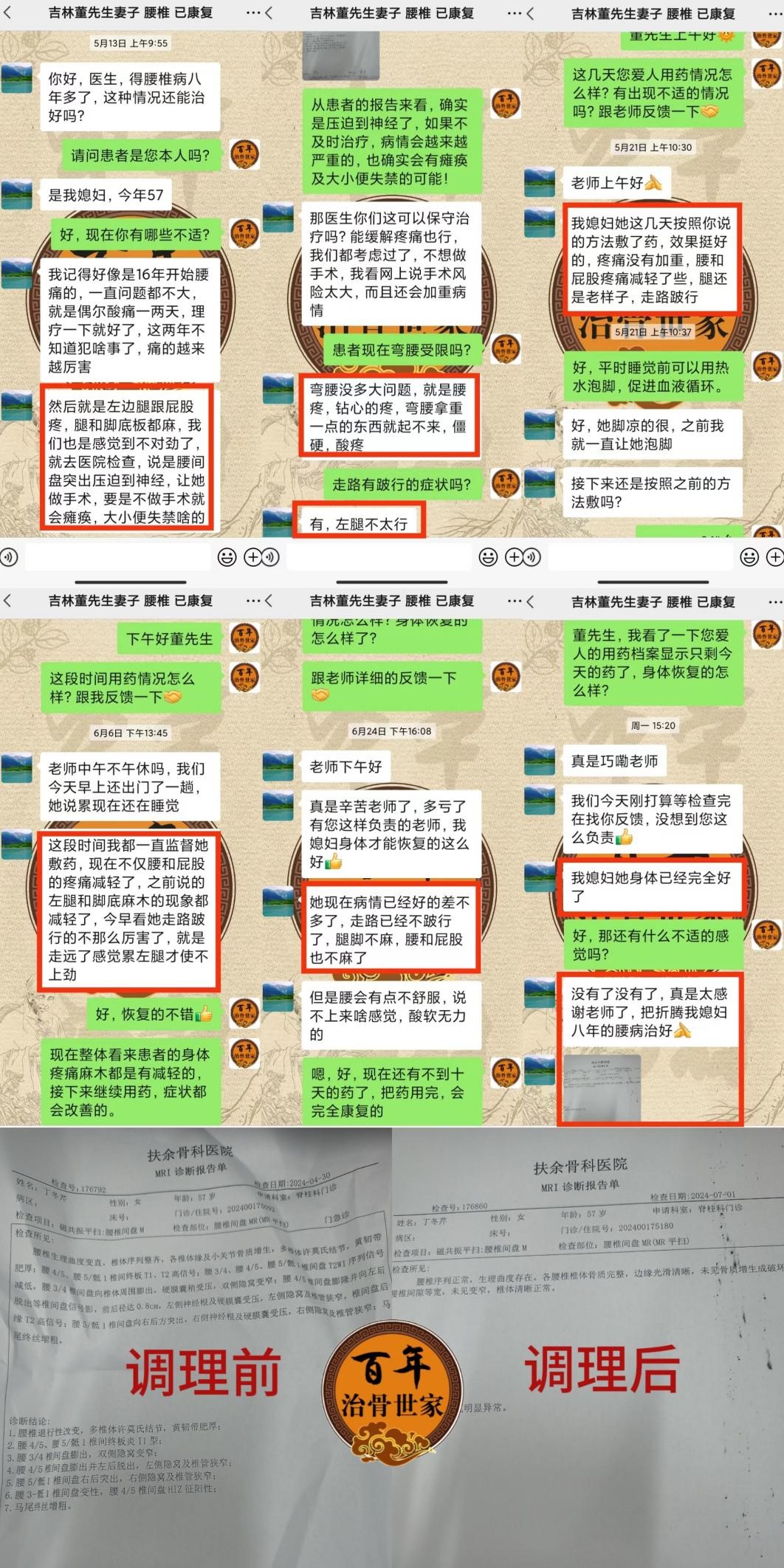 就在万分痛苦的时候,直到今年腊八,我清楚地记得那天是2024年1月18日,我在《南方都市报》上看到了关于中医传承世家的报道,决定去试一试。我加了中医传承世家李老师的微信:16624745607 。 反映了我的情况。李老师耐心听取了我的病情,又看了下近期的检查报告,给我做了详细的解答,问我:试了这么多治疗方法,知道为什么效果不佳吗?我说:不知道。李老师说:原因在于病变出在关节里面,关节软骨是无血管组织,常规产品需经肠胃吸收、血液循环才能达到病灶,很难发挥作用。